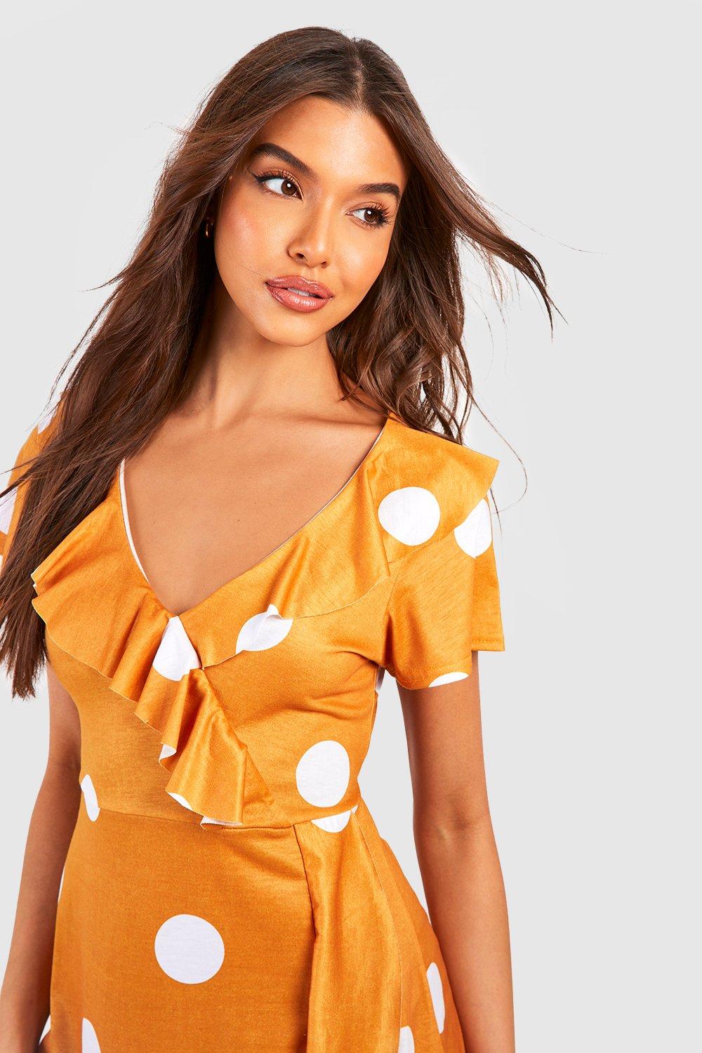 Mustard polka best sale dot wrap dress